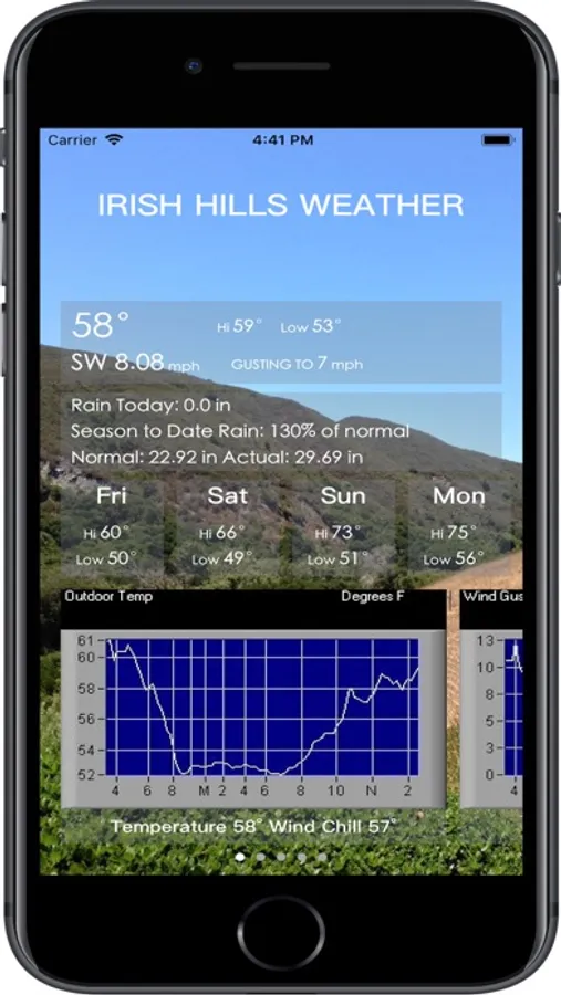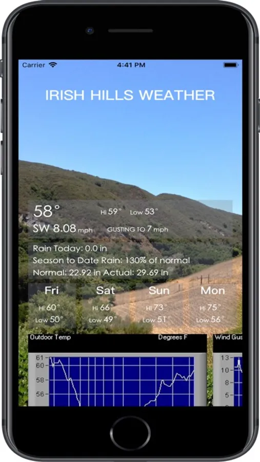 Description- Provides day's forecast, current and last 24 hr. graphical weather trends for Irish Hills micro climate of San Luis Obispo, CA. Detailed information is provided for the following categories: