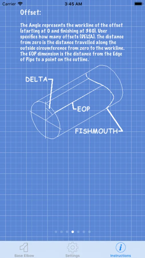 Are you still carrying that blue book around? Confused about how to layout cut lines for joining a piece of pipe to an elbow? If you are a pipe fabricator, welder, or fitter who needs to make perfect elbow base support cuts, then this app is for you. Forget books, calculators, compasses, ancient saddle layout procedures, laptops, expensive CAD programs, mathematics or internet access to figure out how to make that perfect base ell joint.