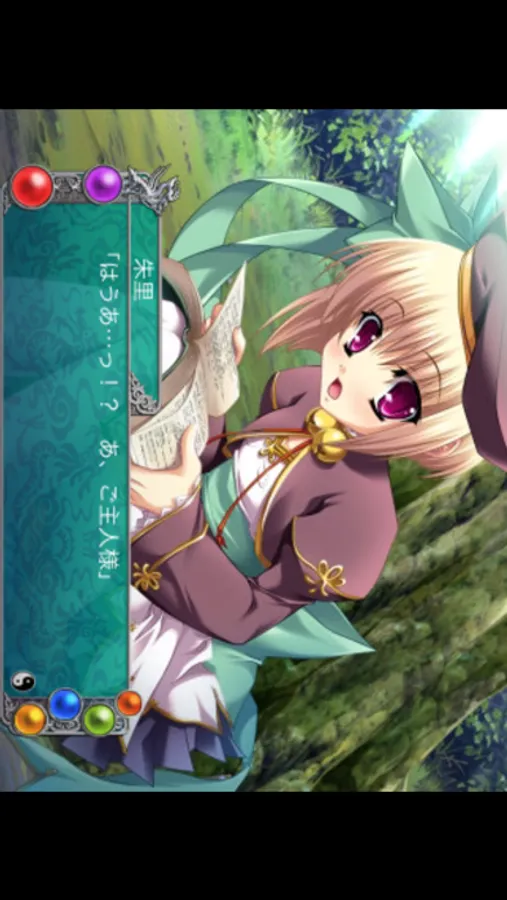 2点タップ : セーブ/ロード/環境設定/タイトルに戻る/ヘルプ/バージョン情報を選択できます。
