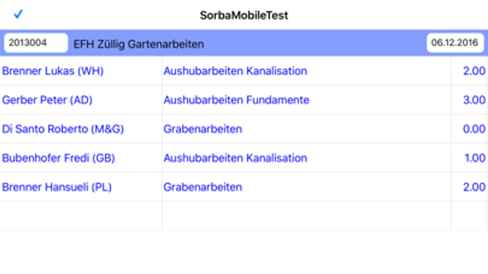 Mit der SORBA Arbeitszeiterfassung wird die Stundenrapportierung zum Kinderspiel. Sie müssen nur die Baustelle auswählen und schon können Sie die Arbeitsstunden der Mitarbeiter auf Arbeitsvorgänge erfassen. Am Tagesende können alle Werte kontrolliert und per Knopfdruck in SORBA Workspace importiert werden, wo diese dann im Wochenrapport zur weiteren Verarbeitung zur Verfügung stehen.