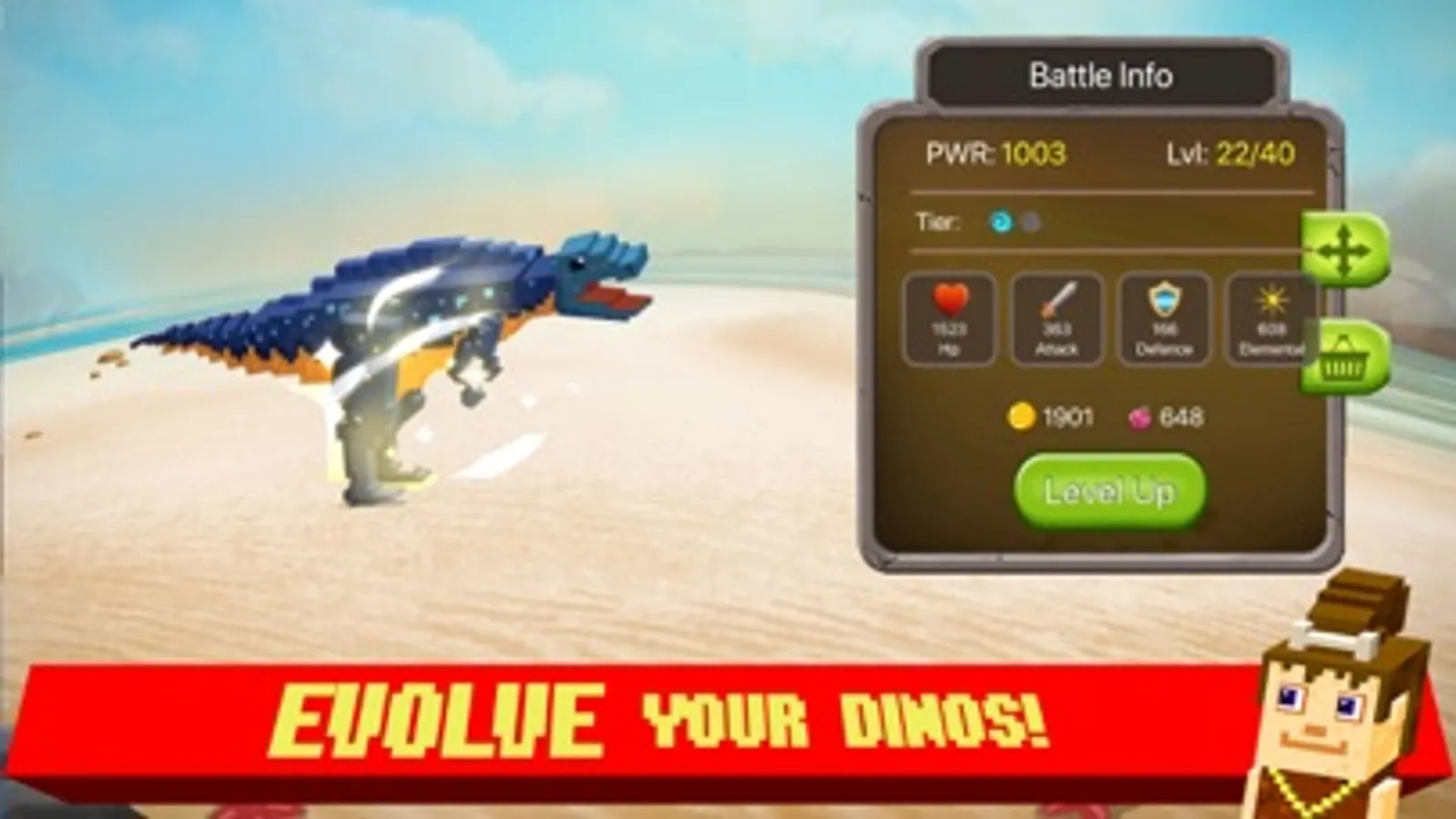 Here you can breed different pixel dinosaur species, feed them and make them stronger and bigger and battle rival dinos for jurassic supremacy. Go craft your own world of 3d style block art dinosaurs!