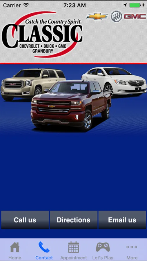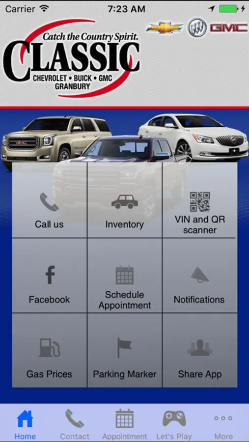 Download the free Classic Chevrolet Buick GMC app to browse inventory, schedule service, receive push notifications about upcoming events, contact the dealership directly, get directions and more!
