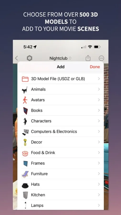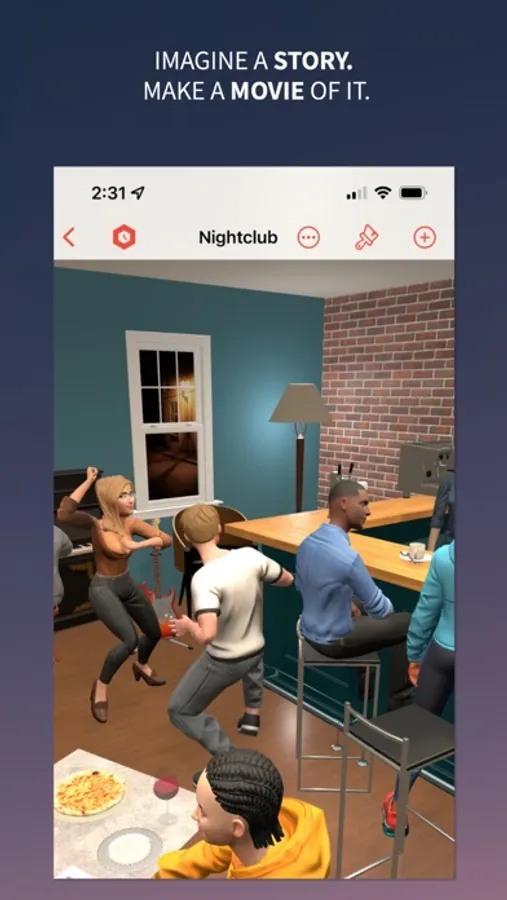 Set your scene by adding, animating and customizing any of the hundreds of free and premium photorealistic 3D models. Choose built-in "clips" to make selected 3D models perform multiple animations like walk, run, dance, jump, cheer, etc. Use drag and drop to easily place the 3D models. Add sound effects, background sounds and musical soundtracks.