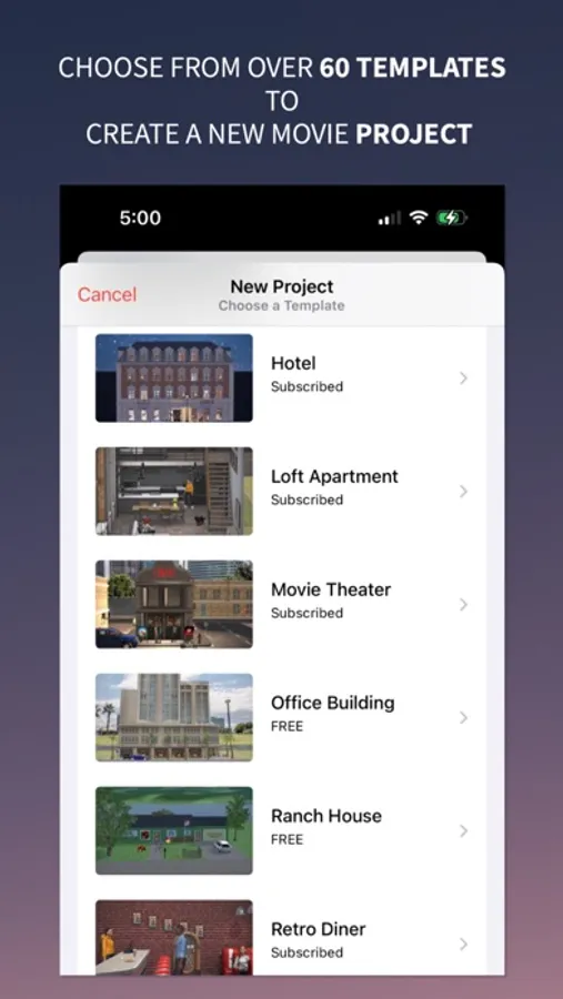 Begin making movies and videos by choosing a project template that includes the scene design or the blank template. Set the scene by customizing it to tell the story. Shoot and save videos of the scene. Create more scenes. Shoot more videos. Combine the scene videos to make amazing movies.