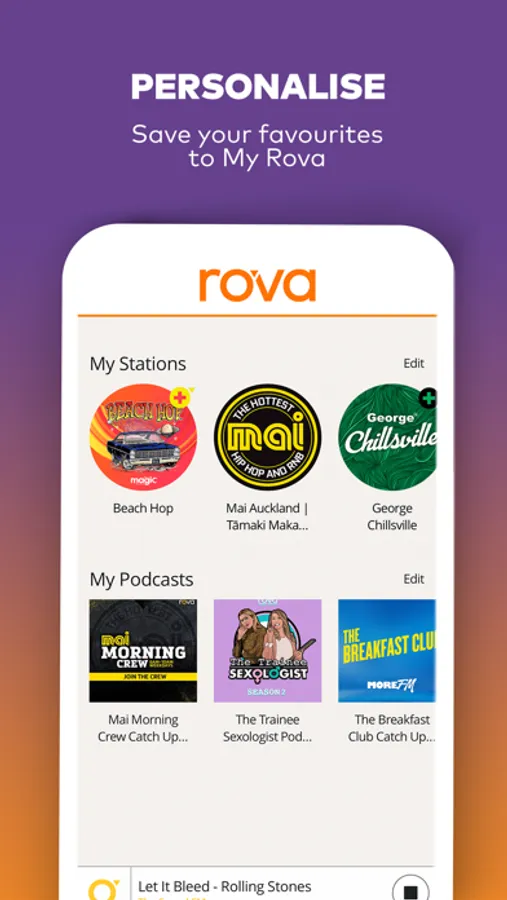 • “My rova” to save your favourite stations & podcasts for quicker access