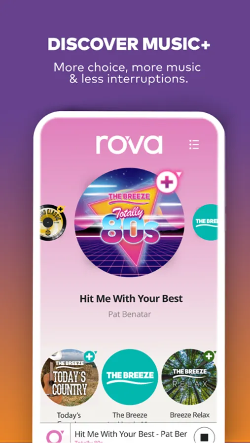With more music than ever before, rova Music+ stations connect you deeper with our main brands, free and available 24/7