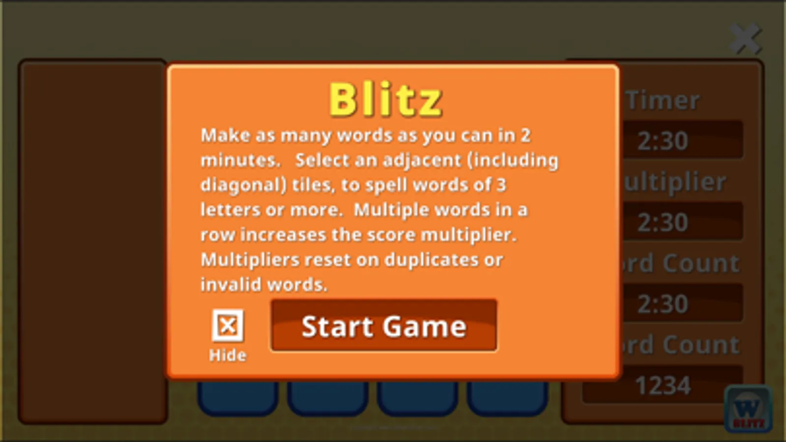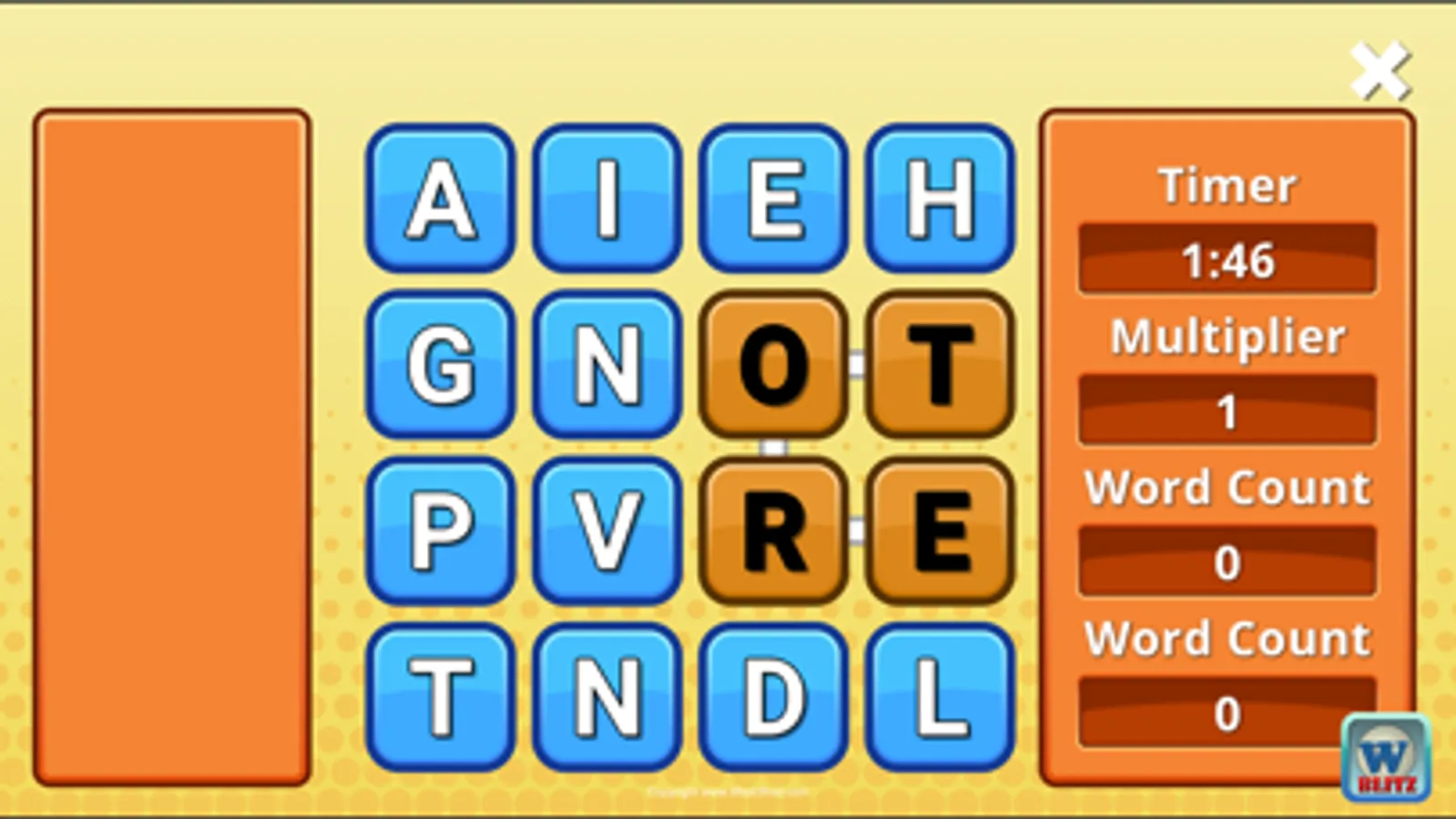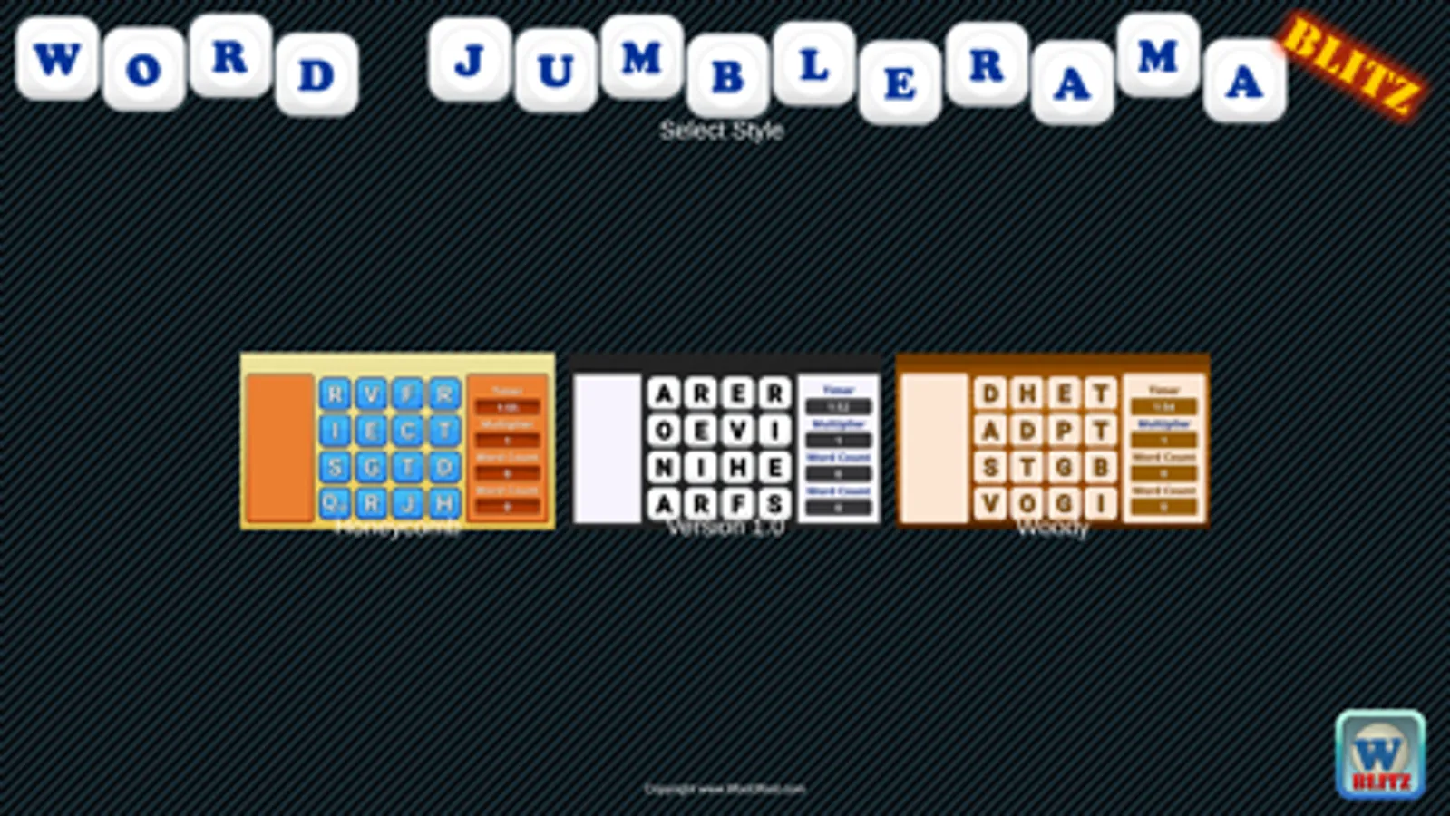 Word Jumblerama Blitz is a fast paced hunt and find word game. You have 2 minutes to go through 16 dice with random letters to form as many words as you can. The faster you are, the higher multipliers you can earn.