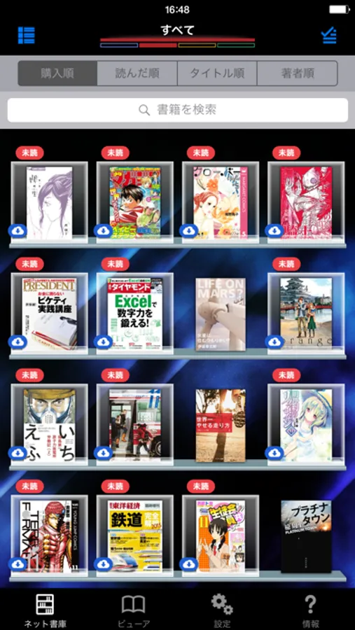 購入した書籍はクラウド上の「ネット書庫」で全て自動バックアップ。最大5台までの端末でお楽しみいただけます。書籍を購入いただくと、本アプリの「ネット書庫」に追加されます。