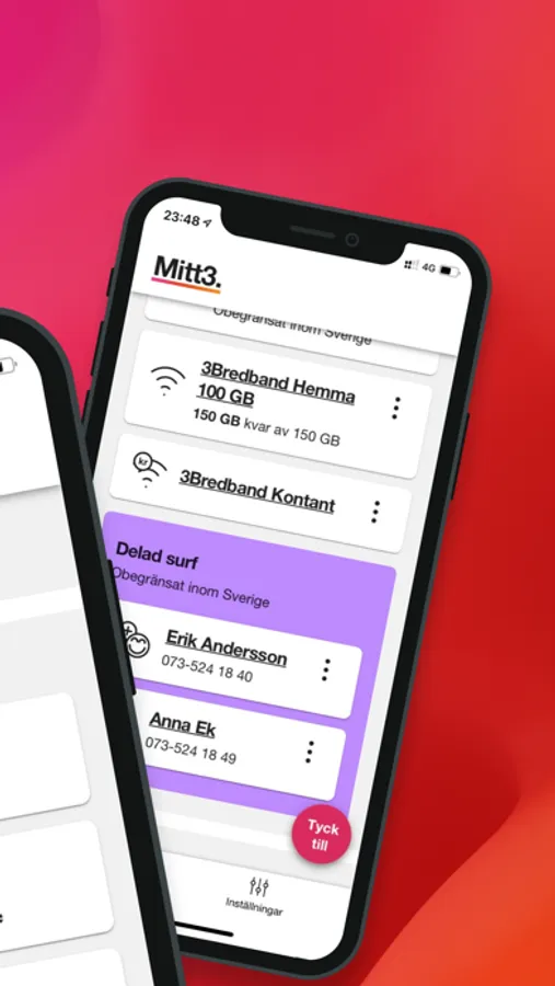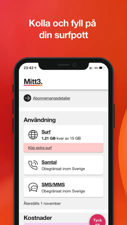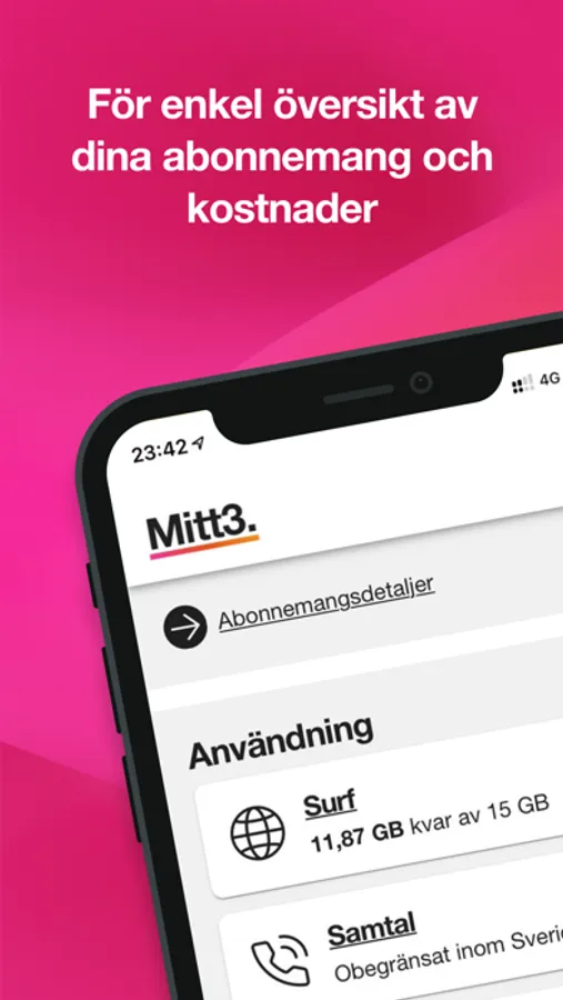 Med Mitt3-appen får du full koll på dina abonnemang hos Tre.