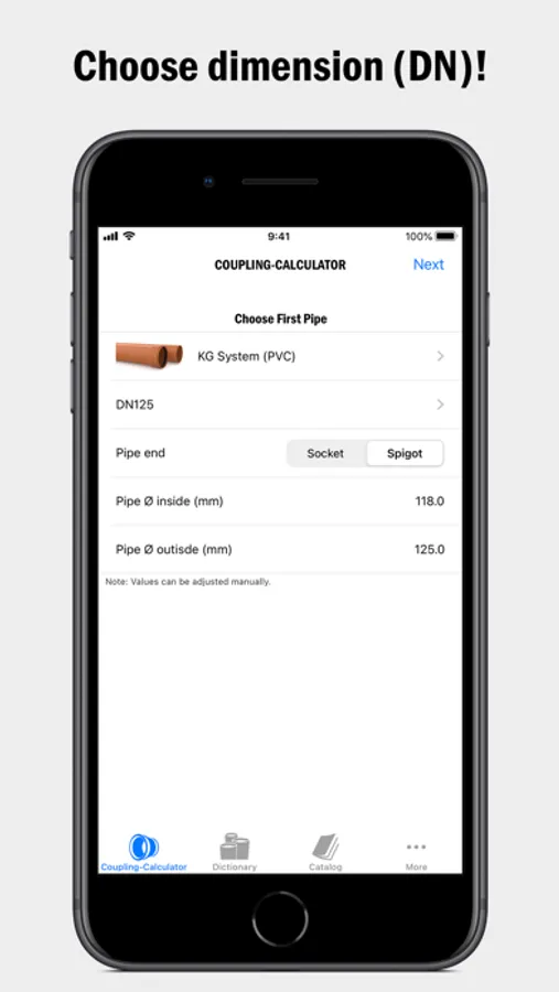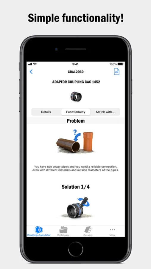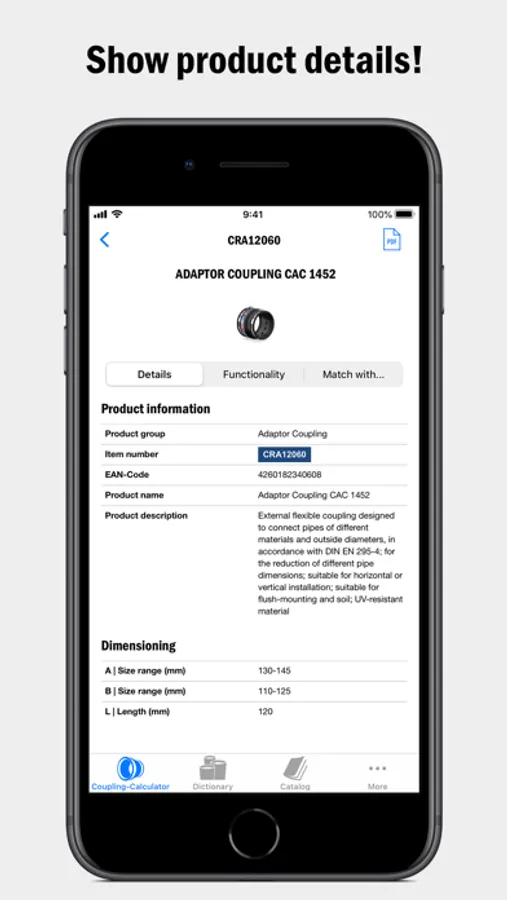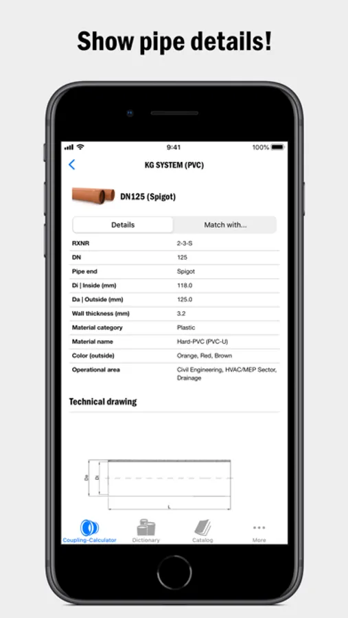 - The “Match with”-Function provides a reversible search mode to find always the right product or pipe!