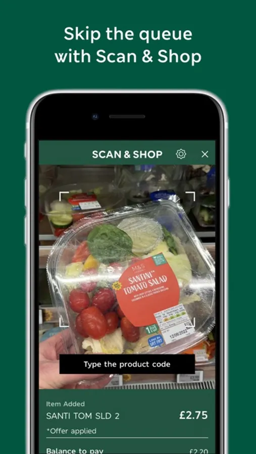 Want to check out faster? Skip the tills with Scan & Shop in our M&S food stores. Scan and pay for your food shopping directly in the app, up to a total value of £45. Use our free Wi-Fi in store or mobile data.