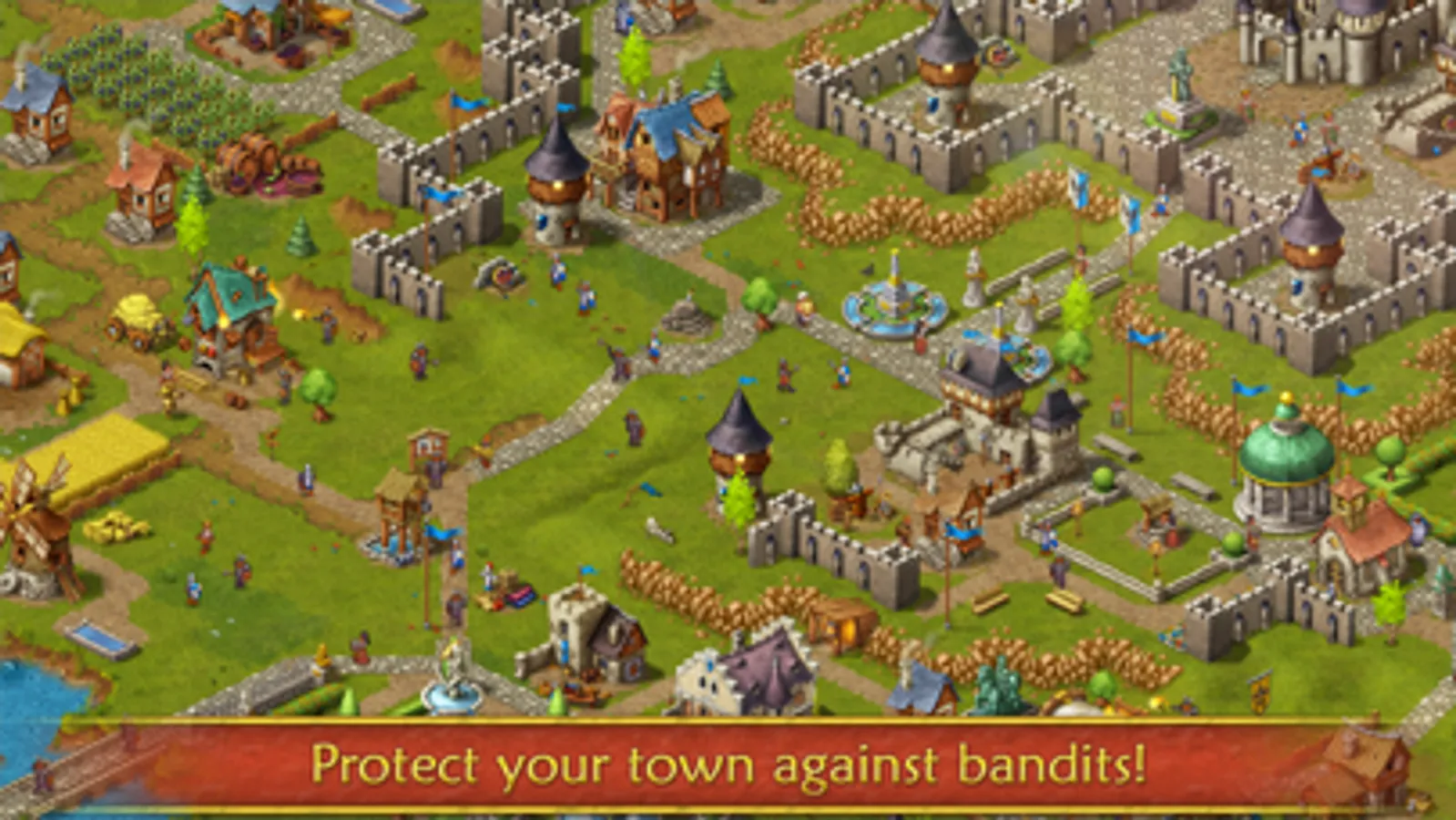 Develop your tiny village to a grand medieval empire with a thriving economy and happy villagers! Find spots for mining ore, harvest the crops of your farms and collect coins as taxes from your folk. Build jousting fields, taverns, marketplaces and beautify your city with impressive statues, magnificent monuments, and lush gardens. But there are also dangers lurking close by. Bandits are in the area, looking to plunder and pillage your peaceful town. Build barracks, guard towers and recruit brave soldiers to protect your citizens from harm. You rule the whole empire from your castle and make sure your inhabitants have fun and stay happy!