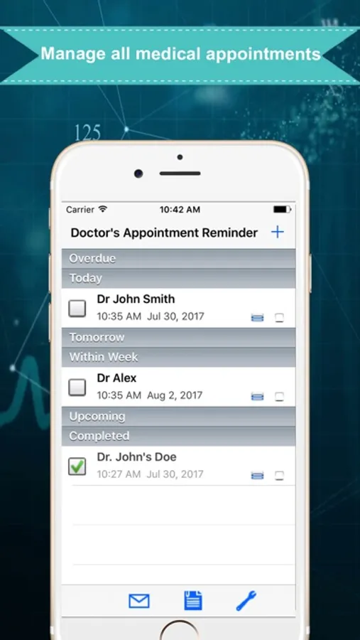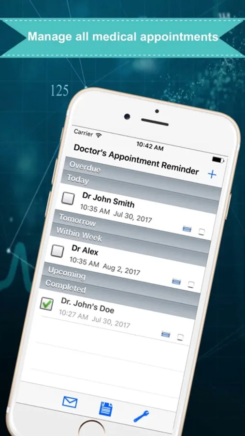 Free Doctor Appointment Reminder app for iPhone and iPad, to keep tab of all your medical appointments. Get notification alerts for upcoming doctor's appointments.