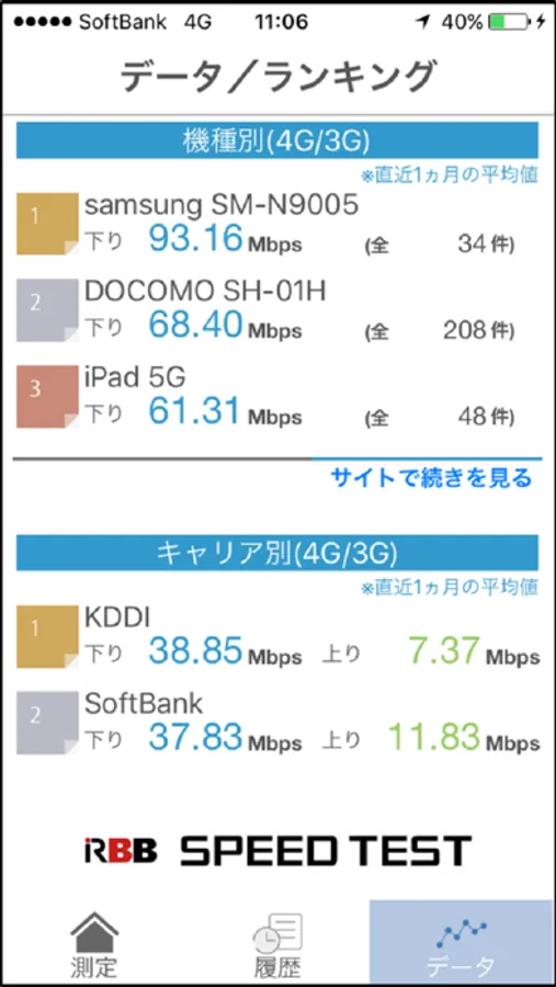・全国のユーザーの測定結果をランキング形式で閲覧可能