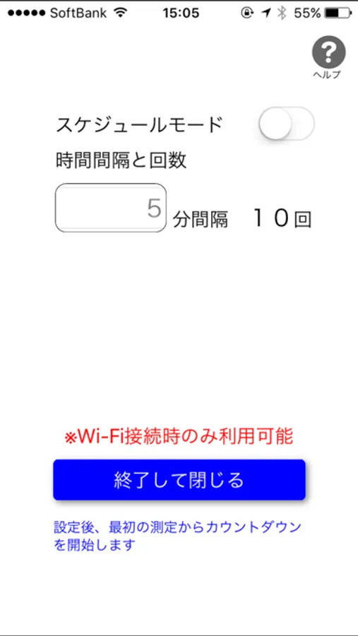 スケジュール測定モードを設定すると、一定間隔で10回の測定を自動でおこないます。