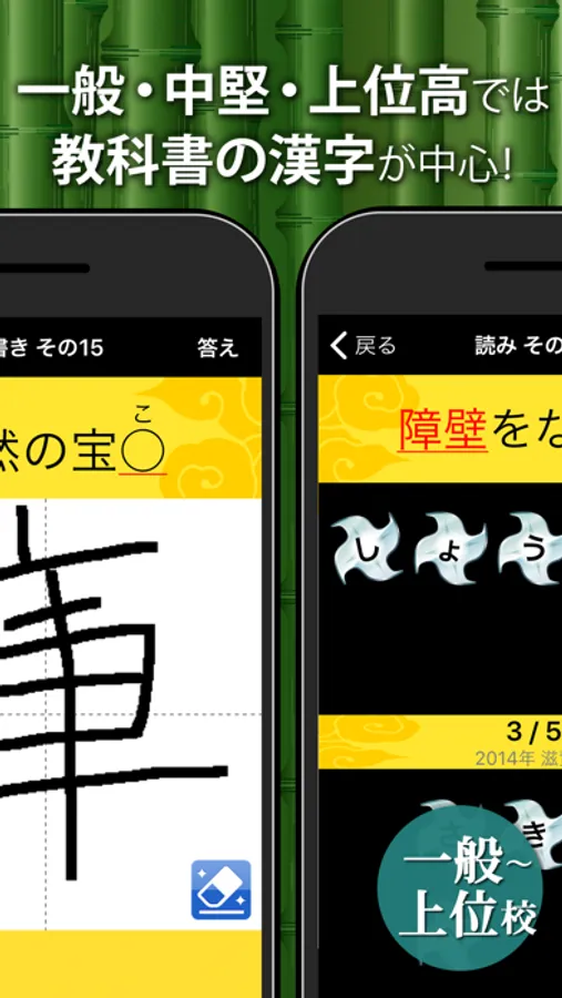 どちらも中学校の学習範囲に入りますが、実際には中学で1つ1つの漢字を勉強する機会はあまりありませんので、ぜひこのアプリを活用ください。