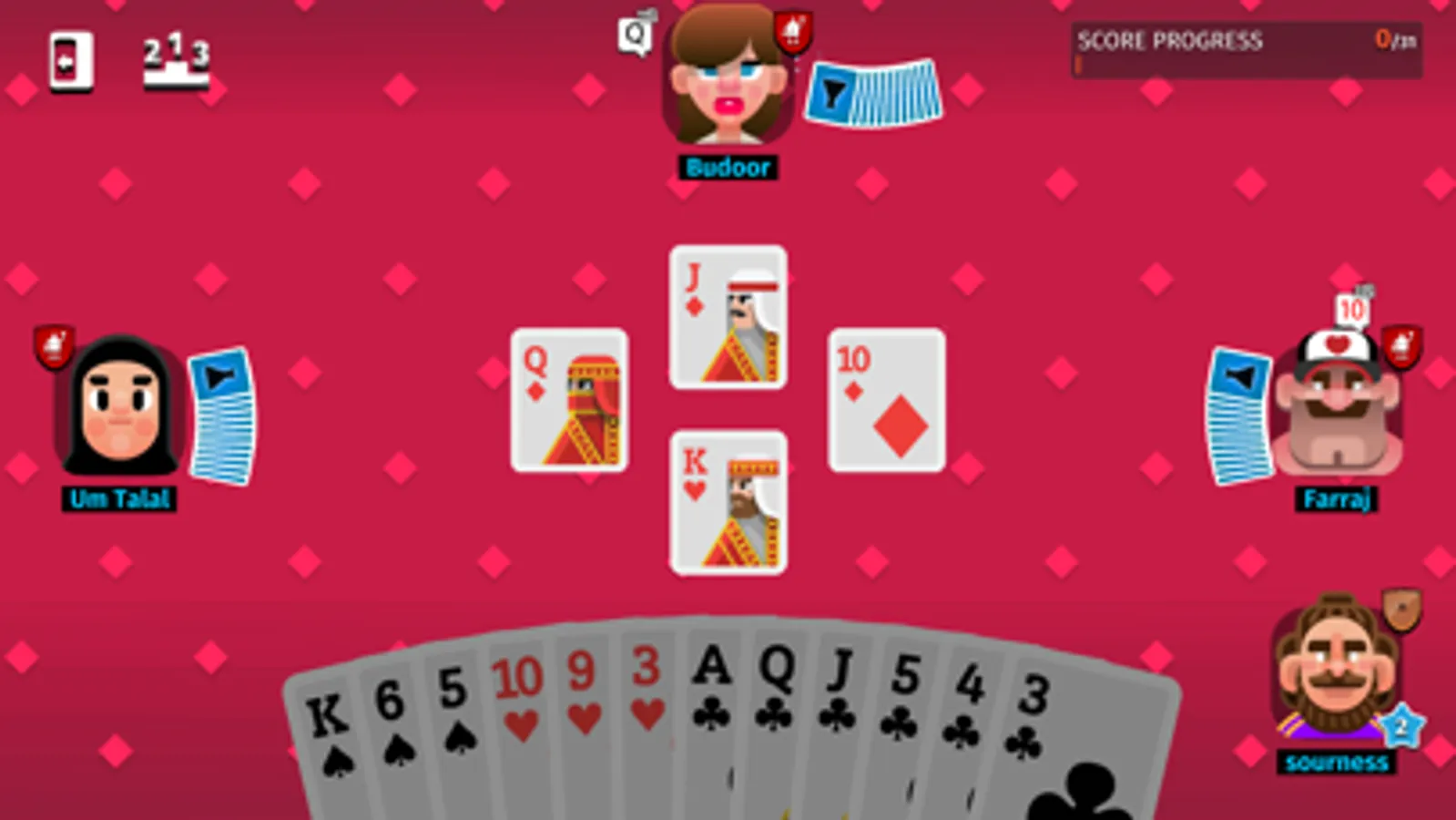 Play the traditional Sibeeta game (based on Hearts) with a special twist by Diwaniya Labs.