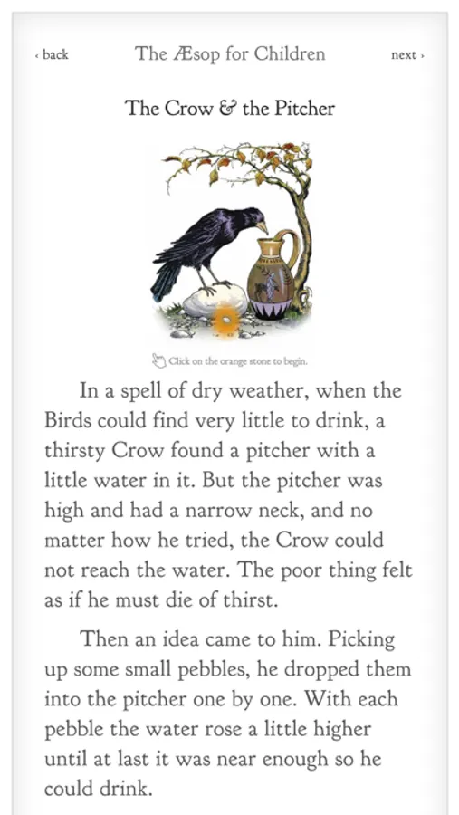 The Aesop for Children interactive book is designed to be enjoyed by readers of any age. The book contains over 140 classic fables, accompanied by beautiful illustrations and interactive animations.
