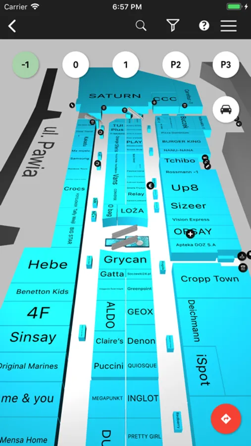 • oznaczanie pozycji samochodu na parkingu oraz wytyczanie trasy od niego i z powrotem,