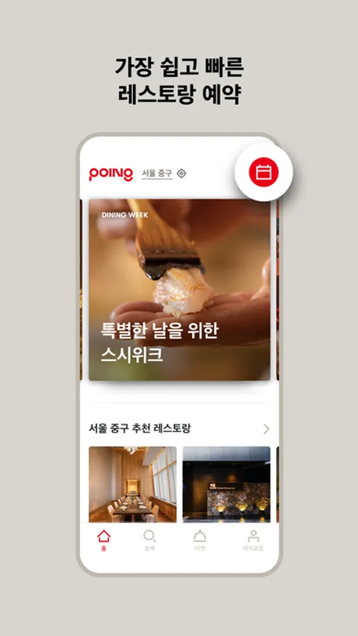 POING은 국내 최고의 레스토랑 예약 플랫폼으로 고객이 원하는 레스토랑을 보다 쉽게 검색하고 빠르게 예약할 수 있는 서비스입니다.