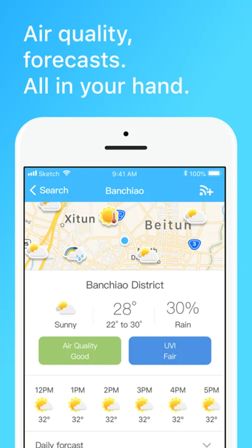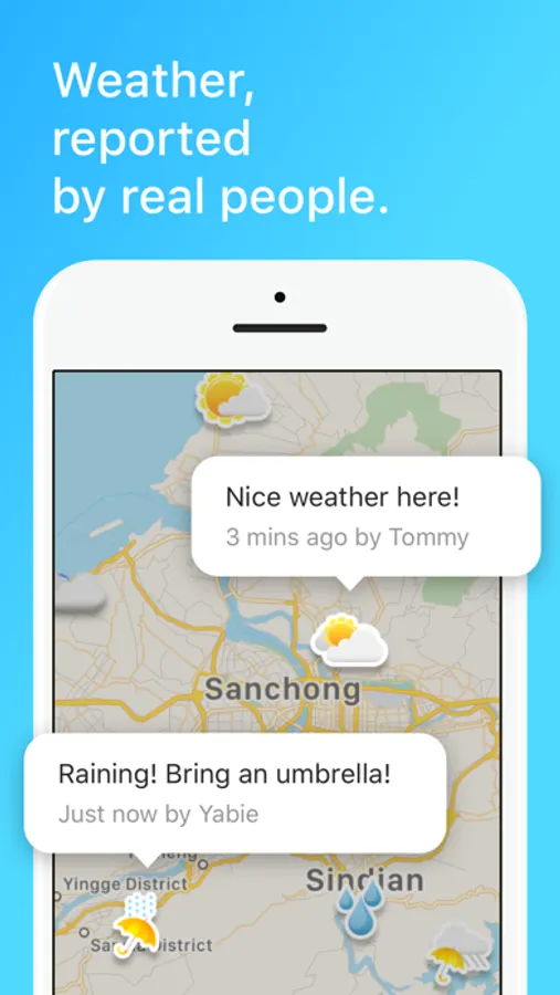 - Share weather with over than 40 weather icons, photos, videos and texts.