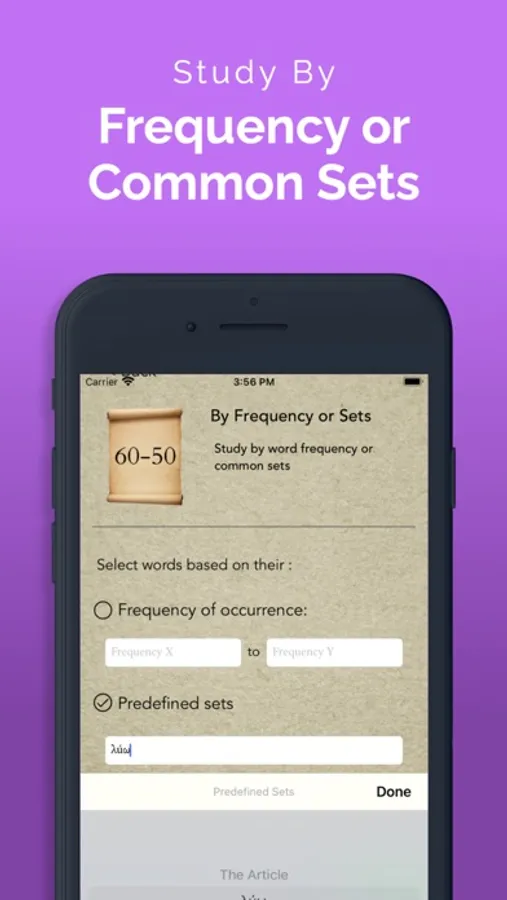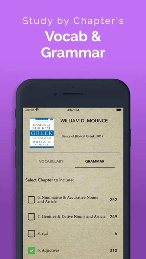 ΠαrsεGrεεk is designed to help both beginning students and advanced students. Advanced students can quiz themselves by frequency and other criteria. For beginning students, ΠαrsεGrεεk has been designed to be compatible with today's top intro grammars: