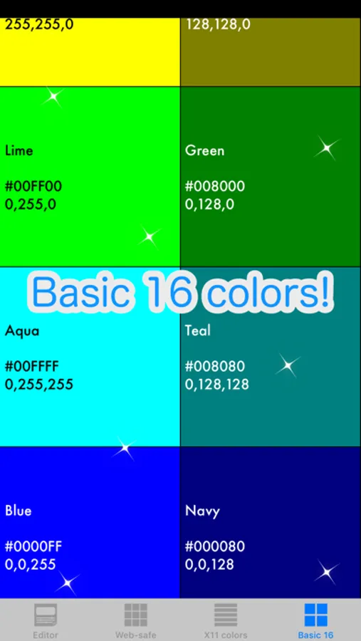 - Displays RGB values/colors to decimal numbers and hex numbers!