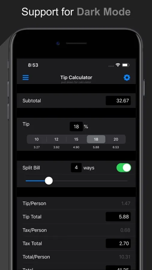 This app prioritizes functionality over everything else. If you want a simple, straight-forward, feature-packed tip calculator that gets the job done, you needn't look further. Features include:
