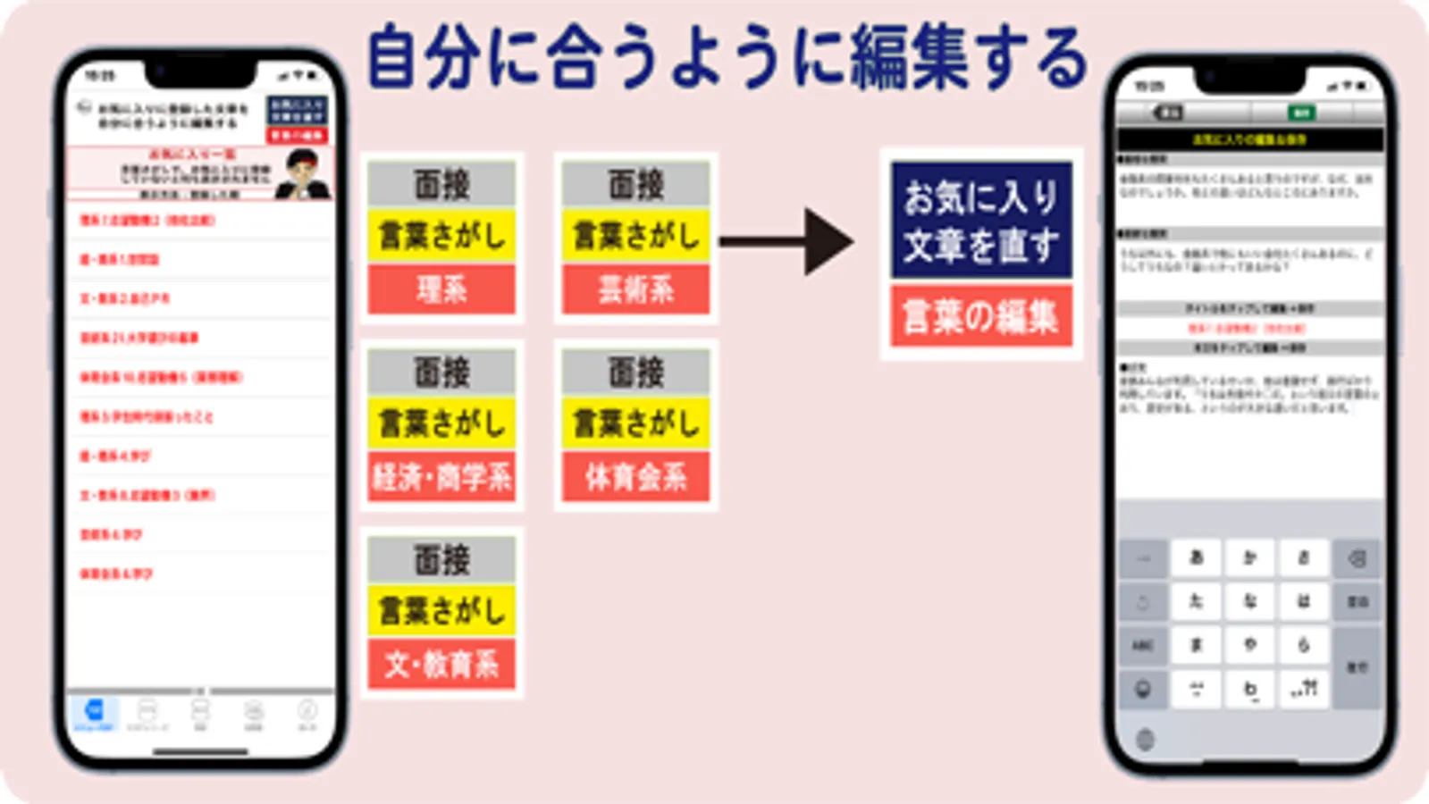 お気に入りに登録した文章を、自分に合うように編集・保存できます。