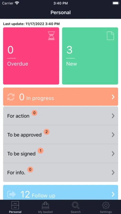 - Access all of your tasks according to their processing status (New, In progress, Completed, etc.)