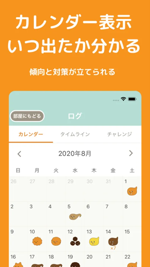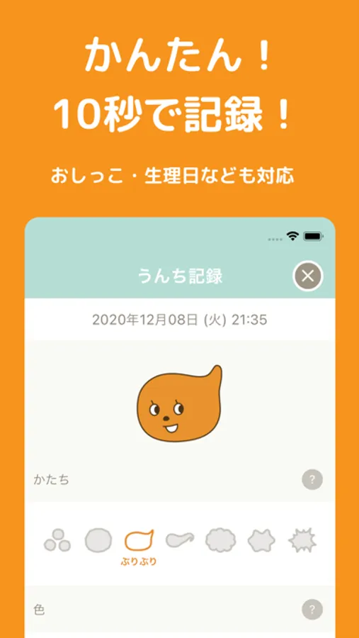 10秒記録でうんちをスコア化!あなたの腸内環境の状態がわかります。高得点うんちで美腸を目指そう!カレンダー管理できるのでお通じのあるなしも一目瞭然。