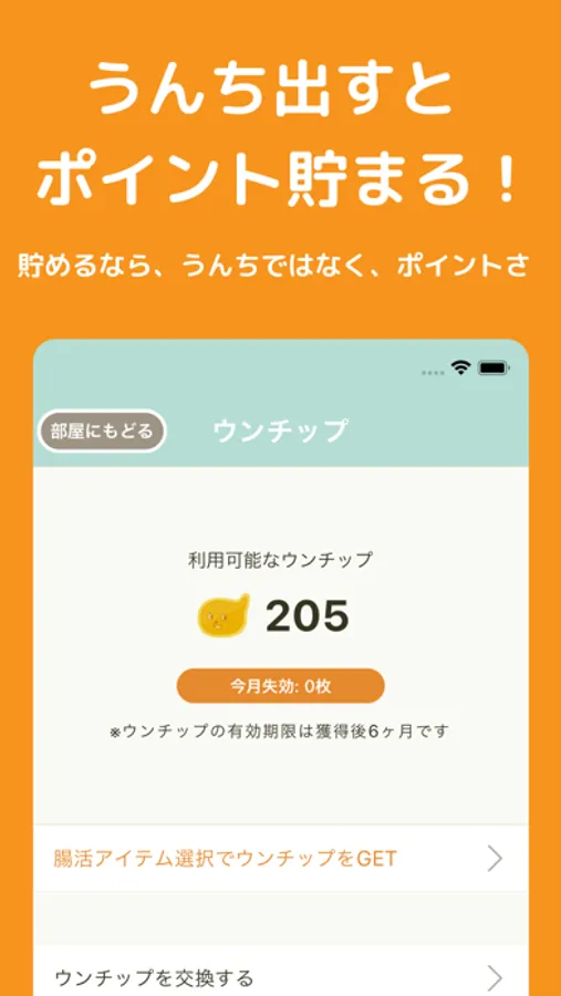 毎日の腸活にご褒美!うんち記録・腸活記録や不定期に行われるキャンペーンなどさまざまな方法でポイント「ウンチップ」が貯まります。便秘や下痢を解消して健康とポイントをゲット!