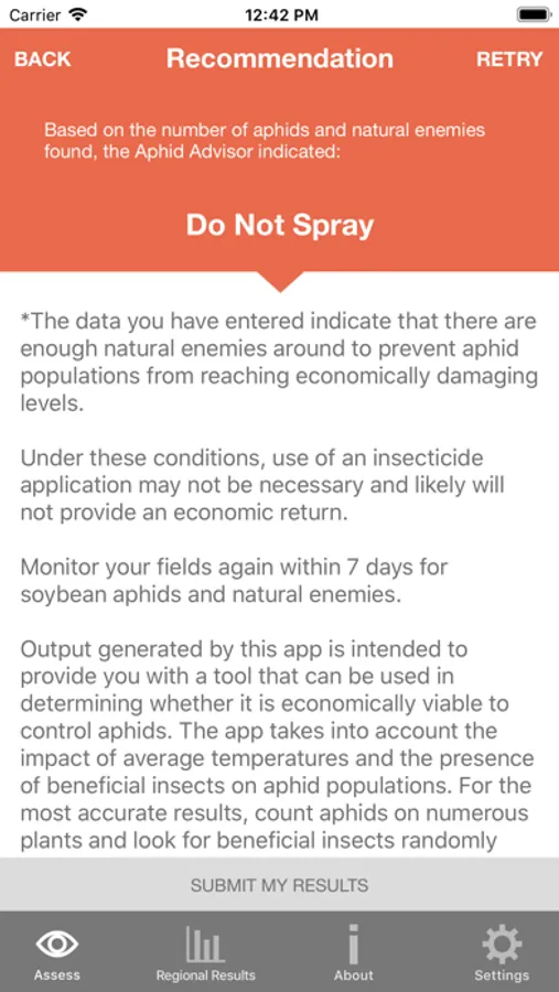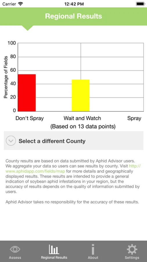 The accuracy of output generated by this app depends on the accuracy of the data submitted by users. Aphid Advisor takes no responsibility for the accuracy of these results. There are other tools and sources of information to consider before deciding what pest management action to take.