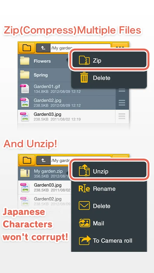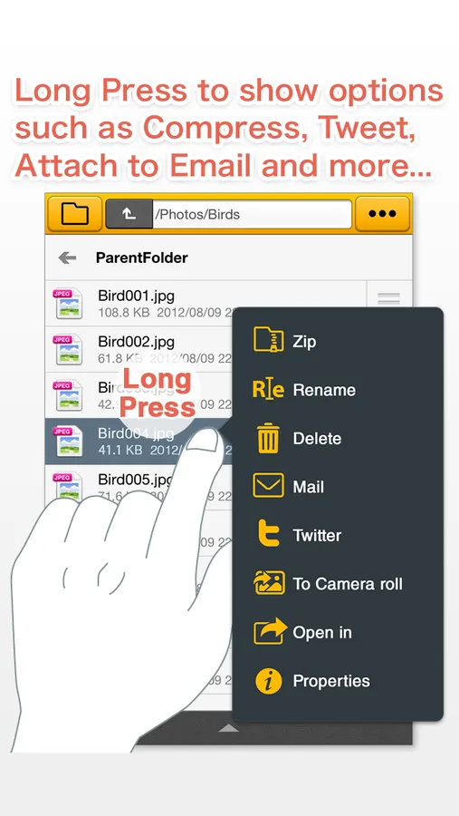 + You can handle files and folders like Finder(Mac) or Explorer(Windows).