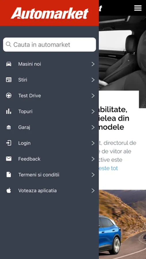 Îţi plac maşinile şi vrei să afli ultimele informaţii din lumea auto? Automarket.ro, cel mai mare portal auto editorial din România, îţi oferă o aplicaţie completă care te va ţine la curent cu cele mai noi ştiri, teste şi maşini lansate în lume. În plus, o comunitate de pasionaţi comentează toate informaţiile şi îţi oferă unghiuri de abordare diferite pentru orice informaţie auto.