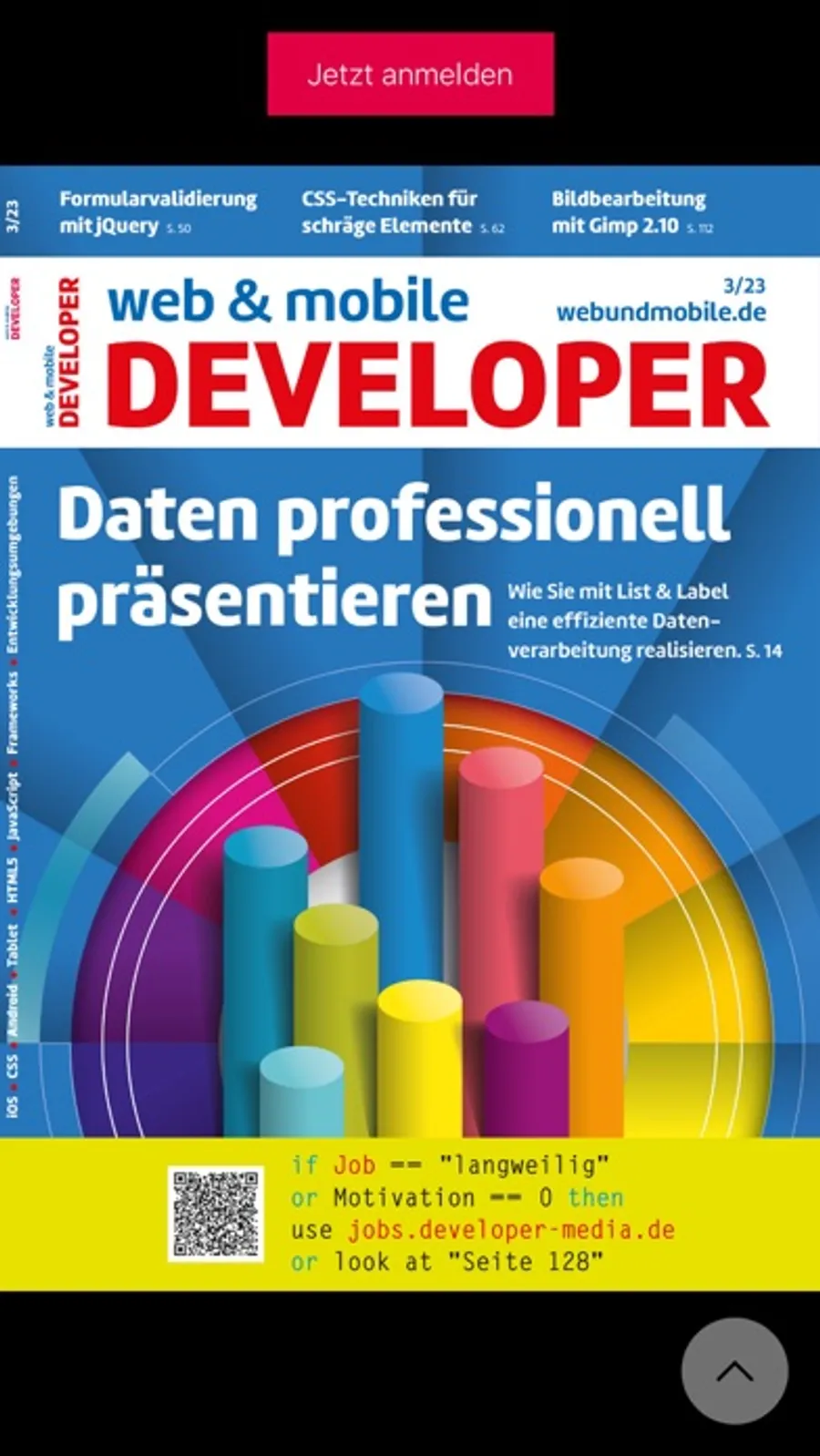 “web & mobile DEVELOPER” bietet praktisches Wissen für professionelle Entwickler von Web-Anwendungen sowie von Apps für die gängigsten Plattformen wie iOS. Weitere Schwerpunkte sind Datenbankapplikationen, Big Data, Cloud, PHP, Java und JavaScript.