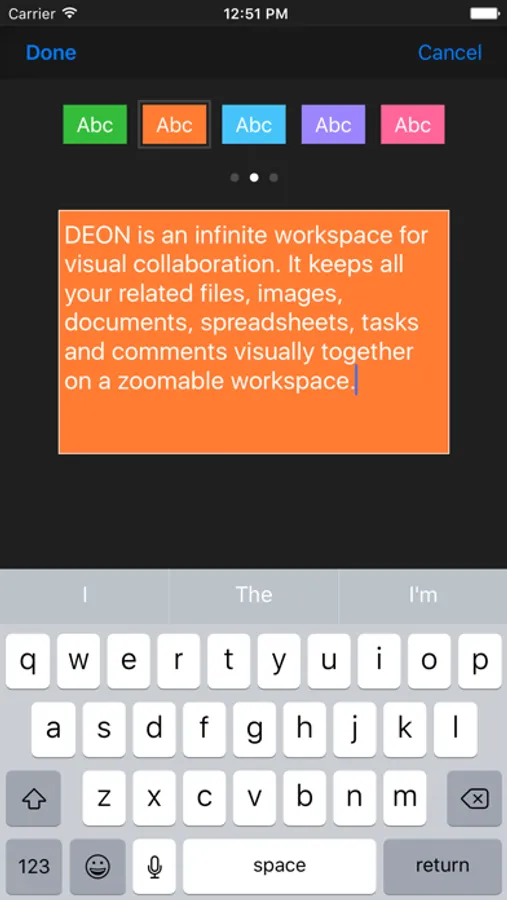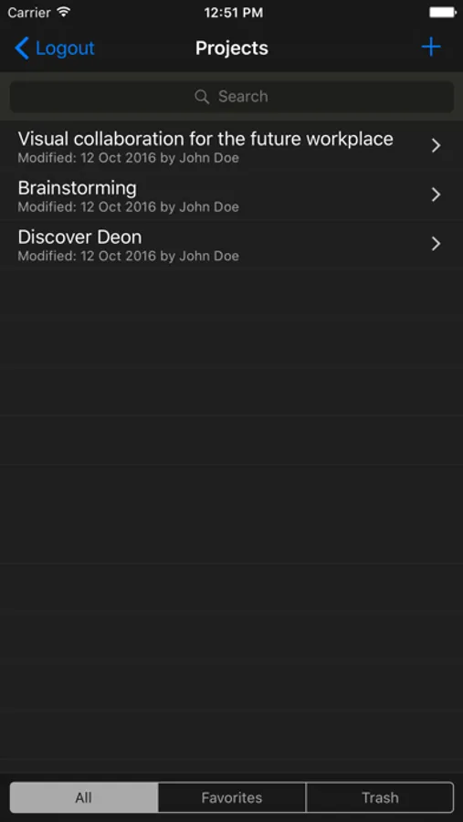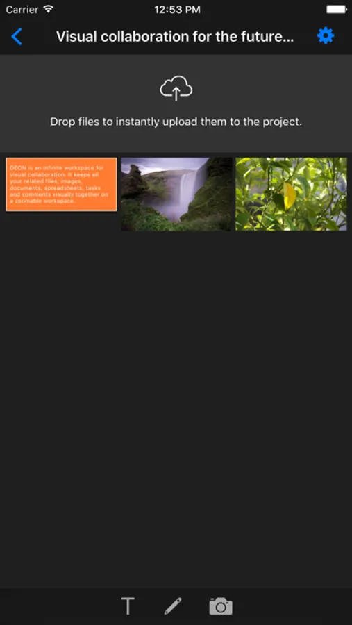 With Deon Lite you can manage your Deon Projects. You can also add content to your Projects. Upload images from your gallery or PDF documents you have on your iPhone / iPad. Create freehand drawings or sticky notes.