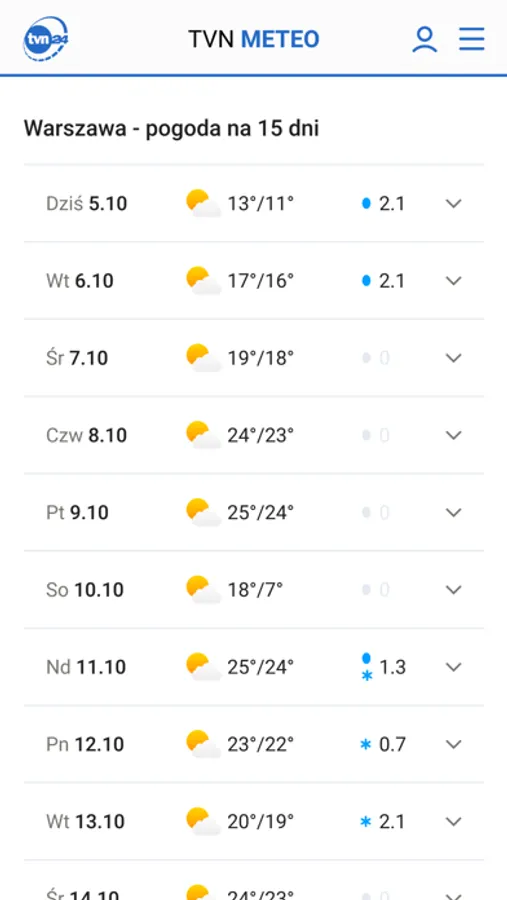 - szczegółowa prognoza pogody dla ponad 80 tys. lokalizacji w Polsce i na świecie;