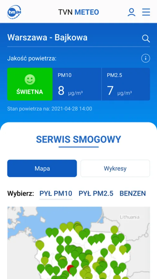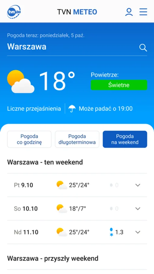 - dostęp do prognoz wideo TVN Meteo – oglądaj na ekranie telefonu, gdziekolwiek jesteś