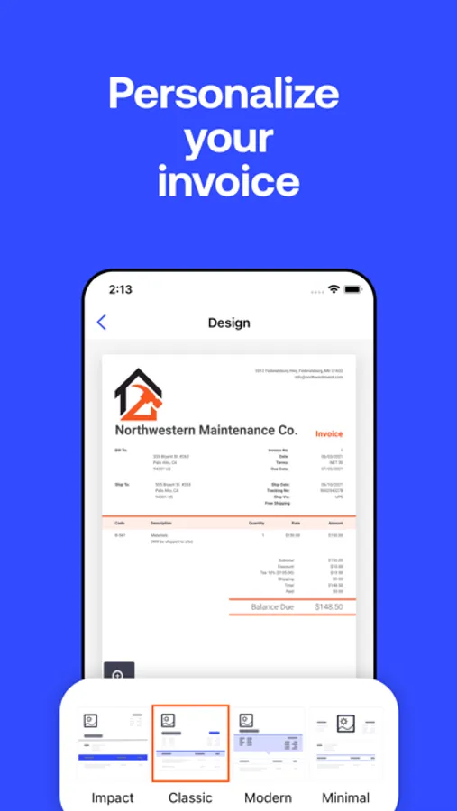 - Match your brand. Sync the color of your logo to your invoice.