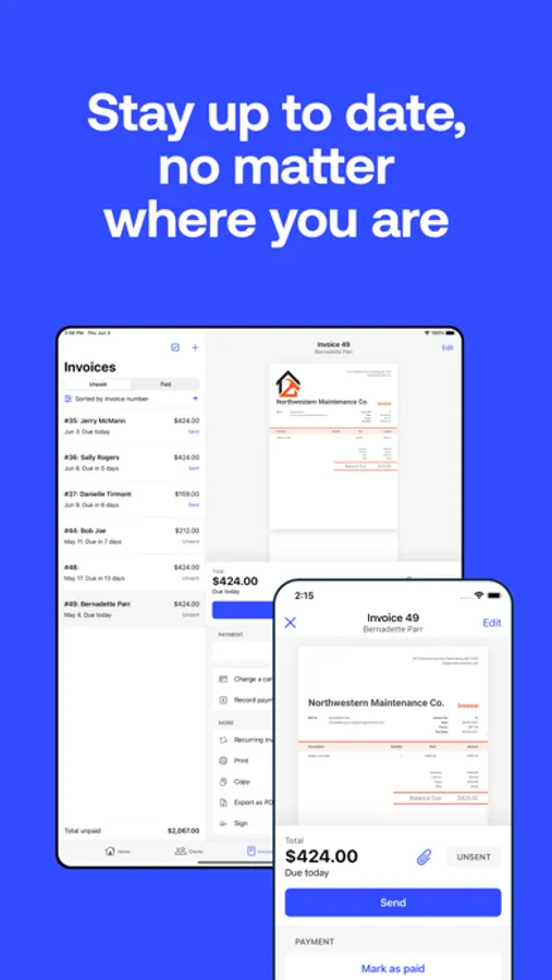 - Send invoices on the spot. Improve your turnaround time and save yourself the paperwork.