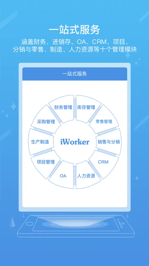 iWorker 云ERP是功能完整的一站式综合管理平台。