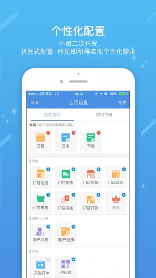 包含财务、进销存、OA、CRM、项目、制造、人力资源等十大模块,全面覆盖企业的管理领域,实现物流、资金流、信息流、业务流的高度集成,让企业的运营更加智能化,管理更加精细化。