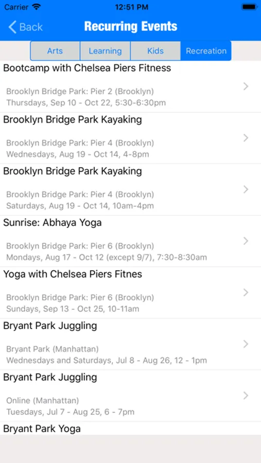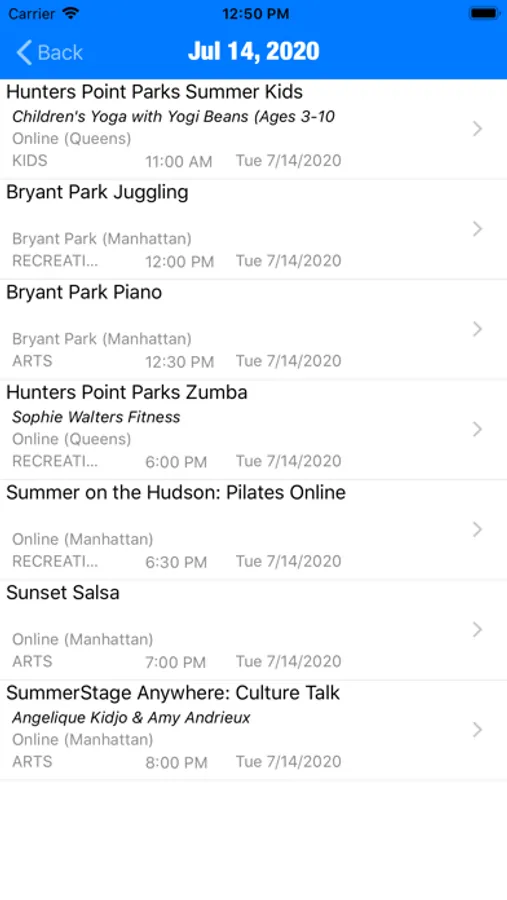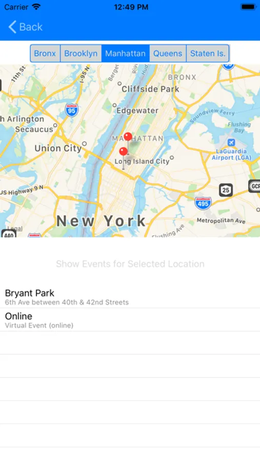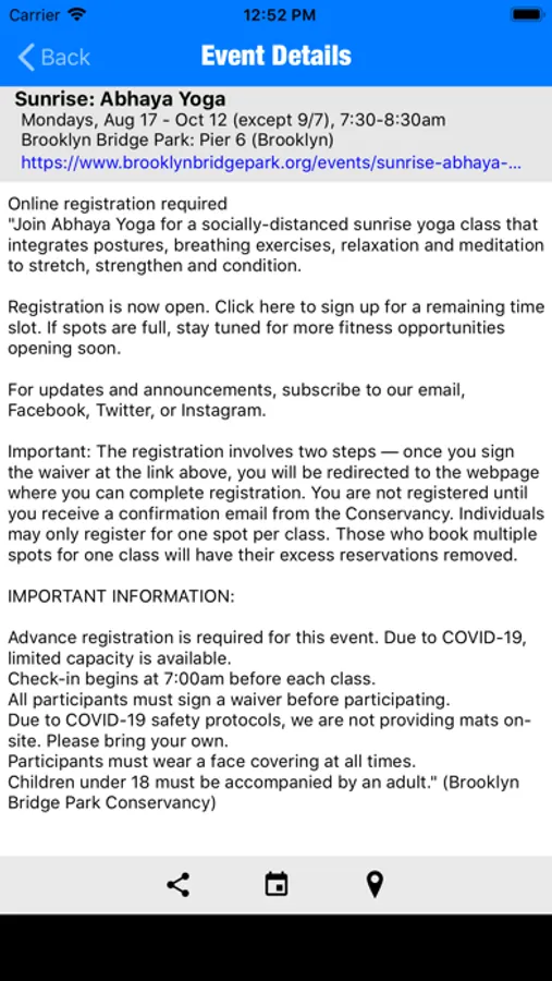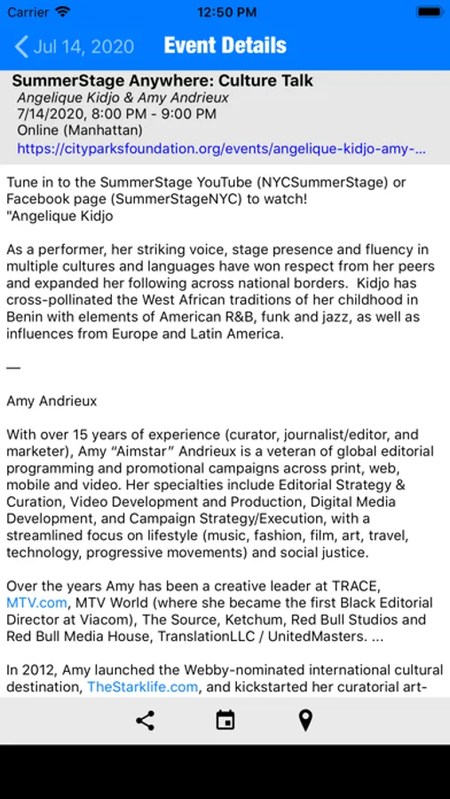 From the app you can share an event with your friends, add an event to your calendar, and locate the event on a map.
