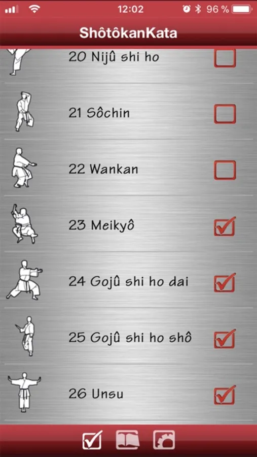 • Which kata did I study last ? The list with the kata forms is build as a to-do-list. Depending on your progress, you can hook a kata off to change its order for a better overview.
