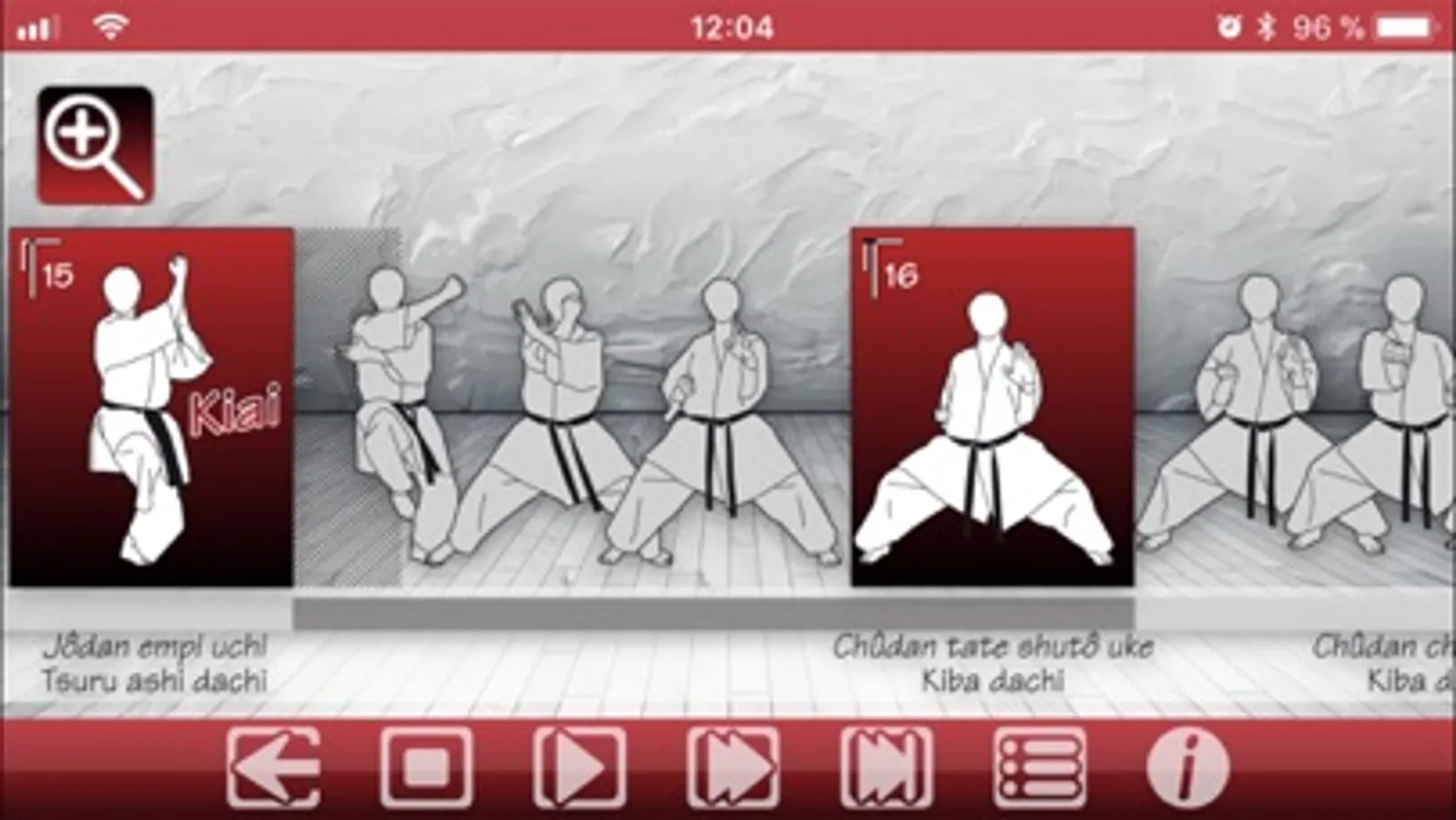 • Two final techniques are always bound with three movements inbetween. Thus you can exactly follow how to get from one technique to another.