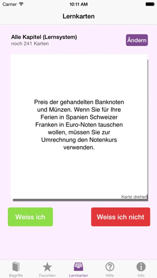 Diese App basiert auf dem Lehrmittel "Detailhandel - Wirtschaft DHF" von Walter Eggen und Hugo Zimmermann aus dem hep verlag. Sie enthält die wichtigsten Schlüsselbegriffe aus dem Grundlagenbuch - alphabetisch oder nach Kapiteln geordnet. Mit digitalen Lernkarten können die Begriffe gelernt und repetiert werden.