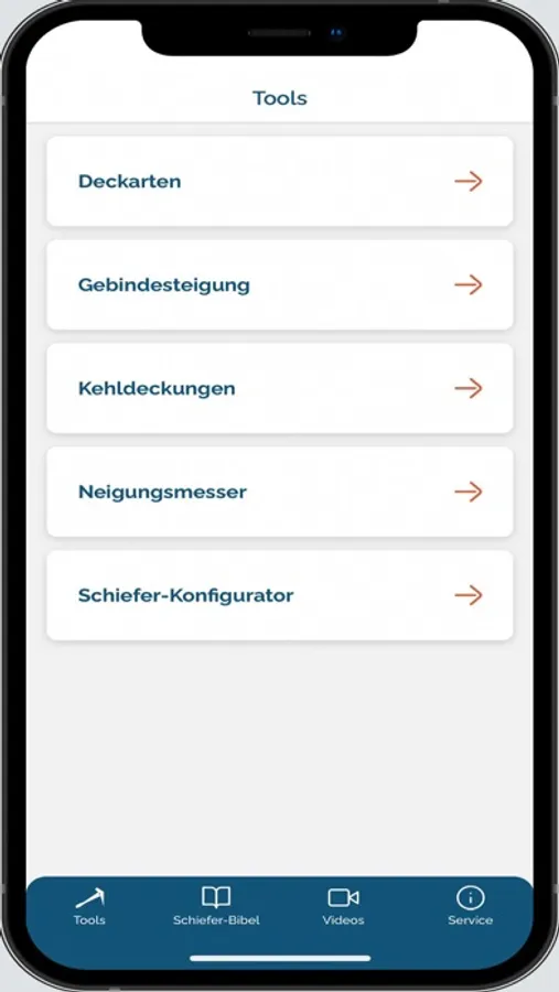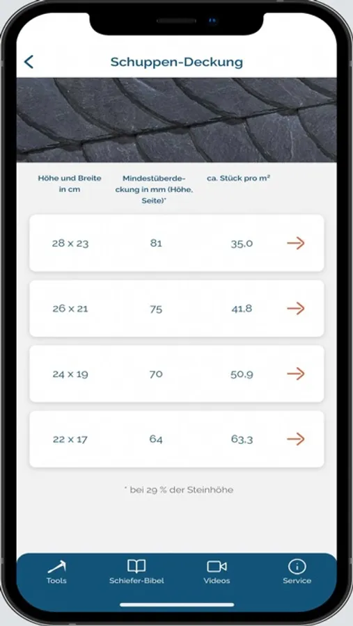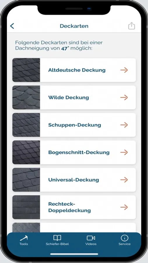 Bei der Planung einer Dach- oder Fassadeneindeckung mit Schiefer erleichtert das mobile Multifunktions-Werkzeug die Arbeitsabläufe vor Ort. Neben der Ermittlung von Dachneigung, Gebindesteigung und Kehldeckung ist unter anderem auch die Verlegebibel mit technischen Details verfügbar. Videos und ein Visualisierungstool Unterstützen bei der individuellen Kundenberatung.
