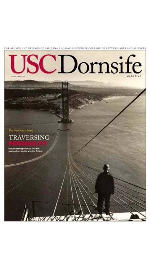 USC Dornsife Magazine shares the many, varied stories of alumni, faculty and students of the USC Dornsife College of Letters, Arts and Sciences, and how they both honor and anchor the University of Southern California's commitment to the importance of scholarly inquiry across the spectrum of knowledge. Published twice a year, USC Dornsife Magazine strives to promote pride in the USC Dornsife and the Trojan Family; engage readers in campus life; and connect alumni with each other and the university.