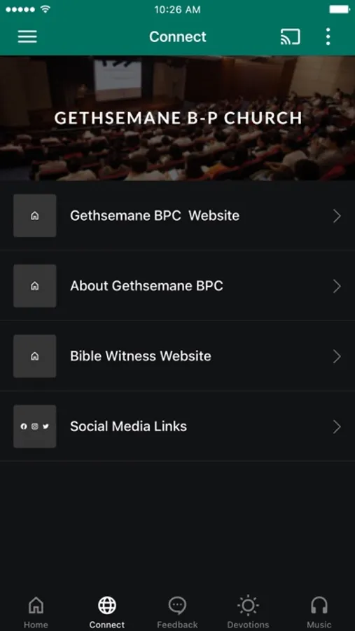This app will help you stay connected with the day-to-day life of our church. With this app you can: watch or listen to past messages; stay up to date with push notifications; share your favorite messages via Twitter, Facebook, or email; and download messages for offline listening.